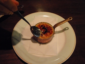 クリームブュフレ。クリームの下地に、カラメルをバーナーで炙った一品。