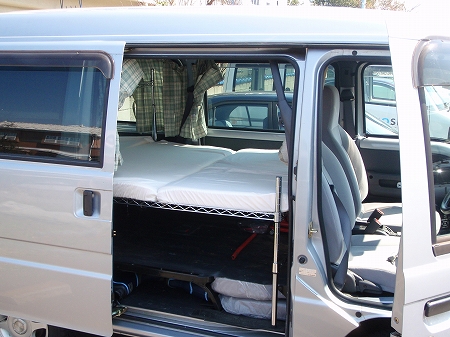 私の車は、運転席の後ろのスペースが寝床になっていて、身長 178 cm の私でも足を延ばしてゆっくり寝ることがでします。