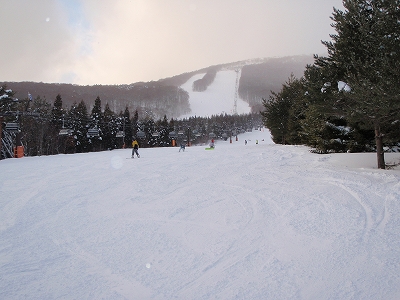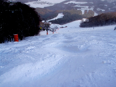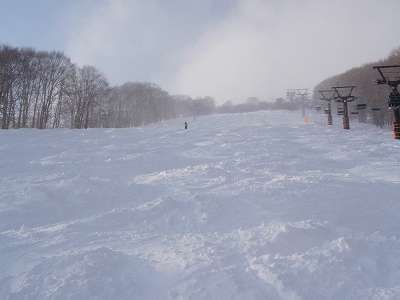 斜度がちょっと足りないですね。このスキー場のメイン バーンなので、ちょっと混んでいるのが残念です。