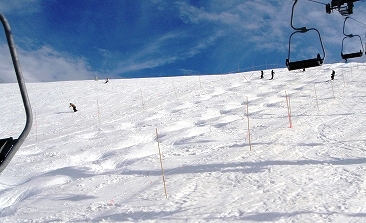 モーグルコースとはリフトを挟んだ反対側に、コブのラインが一本できています。