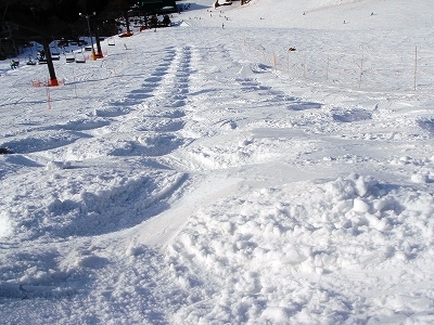 スキー場のモーグルコースを管理されている方は、斜面に土が見えてくるとスコップで雪入れを頻繁に行ったり、デラがけしたり、とても熱心にコースを整備されていて、頭の下がる思いです。