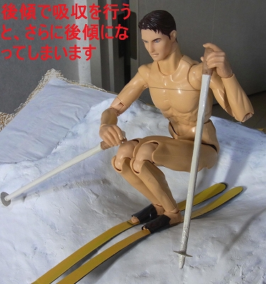自ら吸収を行わないで滑る場合は、上記のように、脚の曲げ伸ばしを大きくとることにより、前傾オーバーや後傾オーバーがさらに大きくなってしまいます。