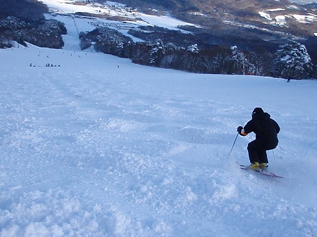 飯綱リゾートは、スキー場全体の斜面が東向きなので、夜間に硬く凍った雪がゆるむ時間が比較的早いです。