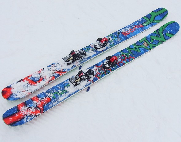 実際のところは、トップとテールが反り上がったロッカー形状のため、有効エッジが短く、滑ってみるとそれほど長さは感じません。