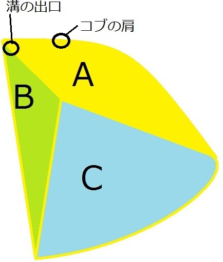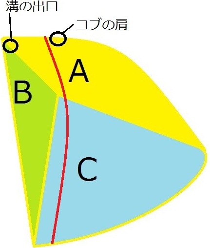 普通コブの落ち込む部分では “C”の部分を通ると思います。