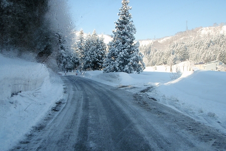 実はここから駐車場までの道が凍結していることが多く、湯沢周辺の他のスキー場ならノーマルタイヤで行けそうな晴れの日も、神立へはスタッドレスやチェーンが必要な場合が多いのです。