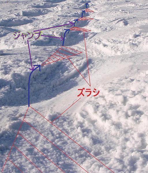左ターン(ずらし)→右ターン(ジャンプ)→左ターン(ずらし)→右ターン(ジャンプ) の繰り返しになります。