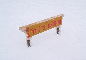 リフト降場の近くには、スノーボードを装着するベンチがあります。